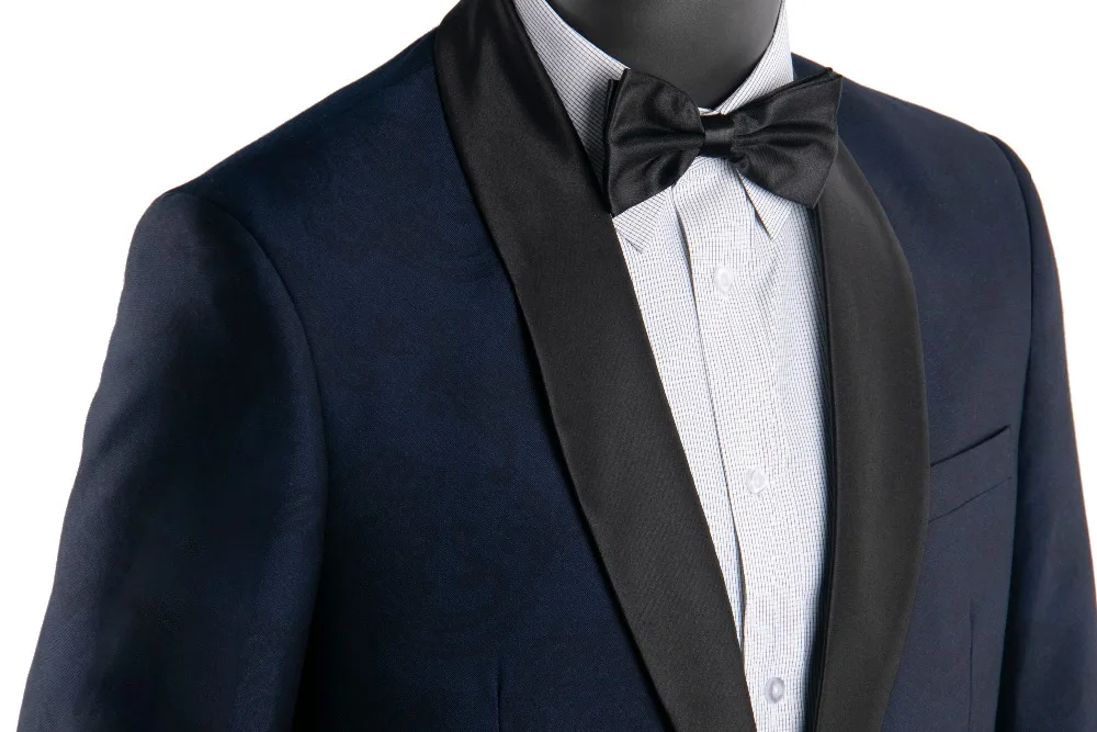 à Bleu Noir Châle Fait Mariage Smokings Homme De Motifs Revers