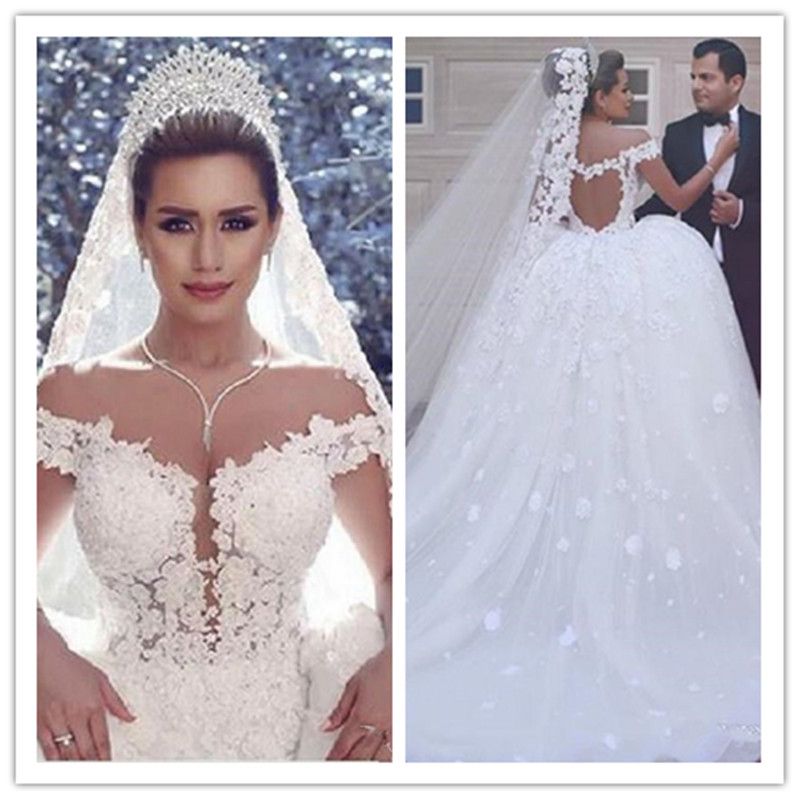 Discount Vestido De Novia 2017 Vogue Arabian Design Wedding Dresses Off Shoulder Appliqued Beaded Sheer Back Wedding Bridal Gown Top Wedding Dress