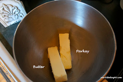 Let's begin...You will need one stick of real butter, and one stick of PARKAY, softened. Do not change this! There is something in the Parkay which makes a difference in taste and texture. I have tried many combinations of shortenings and butter and this is by far the best one!