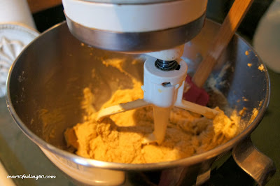 Add the flour mixture a little at a time until mixed well together. Then add a small, 2 oz. package of chopped pecans (no nuts is fine)...Texas pecans are the best! Mix well.