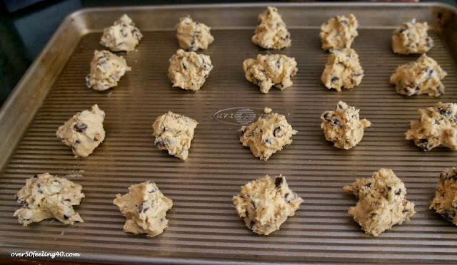 Preheat oven to 350 degrees, and spoon cookies on to a cookie sheet.