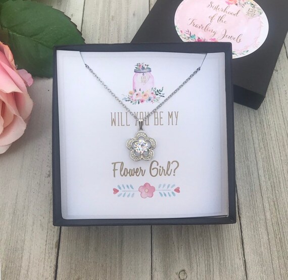 Flower Girl Proposal Gift Will You Be My Our Flower Girl Ask Flower Girl Silver Floral Cz Necklace Gift Flower Girl Jewelry Gift Ideas