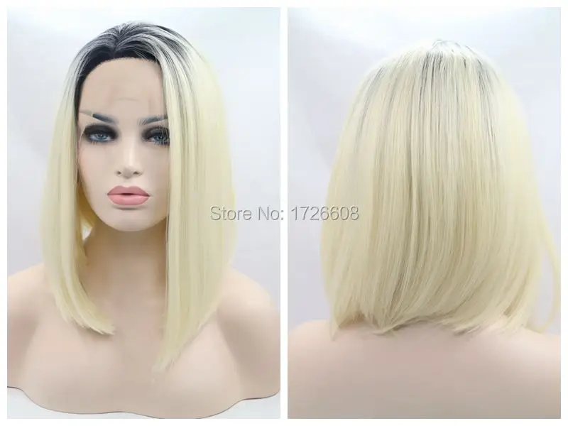 Synthetic Lace Front Wig Dark Root Short Blonde Bob Artificial Hair