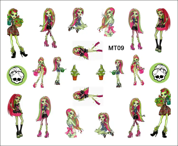 1 Sheet Nail Mt09 Monster High Green Venus Mcflytra Cartoon Skull Nail Art Water Transfer Sticker Decal Sticker For Nail