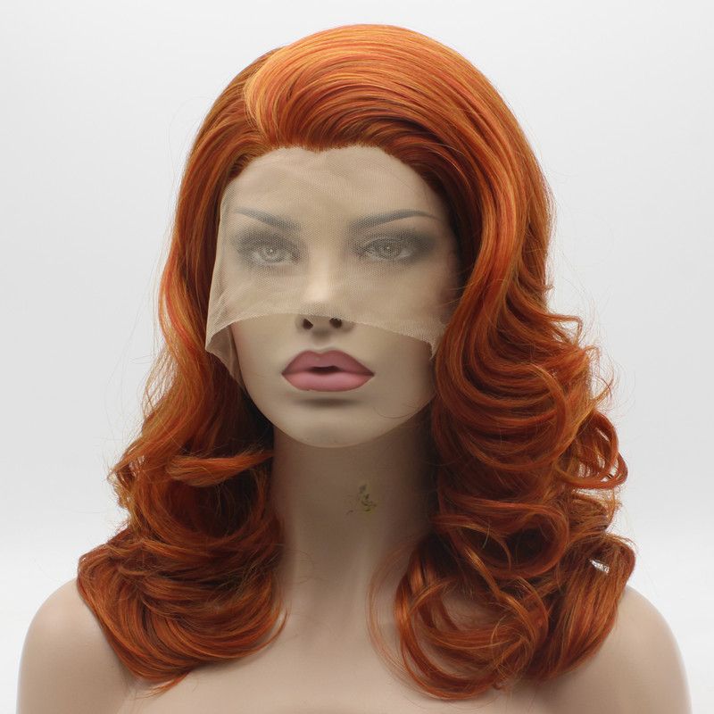 Iwona Hair Wavy Shoulder Length Blonde Red Mix Wig 19 144 3100 Half Hand Tied Heat Resistant Synthetic Lace Front Wig Front Lace Wigs Cheap Hollywood
