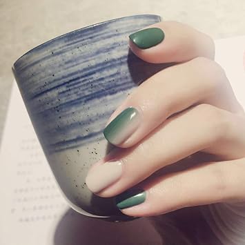 Amazon Com Asooll 24pcs Gradient False Nails Green Glitter