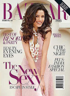 Freida Pinto on Harper’s Baazar - pics: This winter, let’s move to the sunny side with Freida Pinto. The girl with the vernal smile looks mesmeric on Harper’s Bazaar December issue. As we try to come out from her spell, her lovely pink dress catches our fancy; she is in LV, and the gorgeous outfit is from the Louis Vuitton 2011 resort collection. Unlike many other cover pages of Harper’s Bazaar, the Freida one is fresher and it also puts a smile on our face.Dont miss more Sexy Cover Girl in Glamorous Photoshoots: